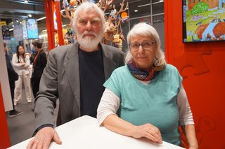 Drei Magier Spiele, Drei Hasen in der Abendsonne und zahllose bei anderen Verlagen angebotene Brettspiele: Das Lebenswerk des gelernten Grafikers Johann Rüttinger reicht über Jahrzehnte zurück. 1995 war er erstmals Aussteller der Spielwarenmesse, bis 2024 immer wieder. Seit das Paar in den 1990er Jahren in einer historischen Mühle in Uehlfeld, Westmittelfranken lebt, betreiben sie den fantasievollen Verlag Drei Hasen in der Abendsonne. Eine Tätigkeit, die es erlaubt, alle Phasen der Spieleherstellung zu betreiben, die aber sehr aufwändig ist. Aus diesem Grund, und weil Johann 2026 80 Jahre alt wird, sind beide heuer als Fachbesucher auf der Spielwarenmesse. Sie besuchen alte und neue Brettspiel-Verlagskontakte mit einem erklärten Ziel: „Wir wollen den Verlag, die Markenrechte und das Sortiment verkaufen. Als einzelne Spieleerfinder werden wir weitermachen und wollen mit anderen zusammenarbeiten. Aber den Verlag wollen wir weitergeben, in passende Hände“, schildert Johann sein wohlüberlegtes Vorhaben.