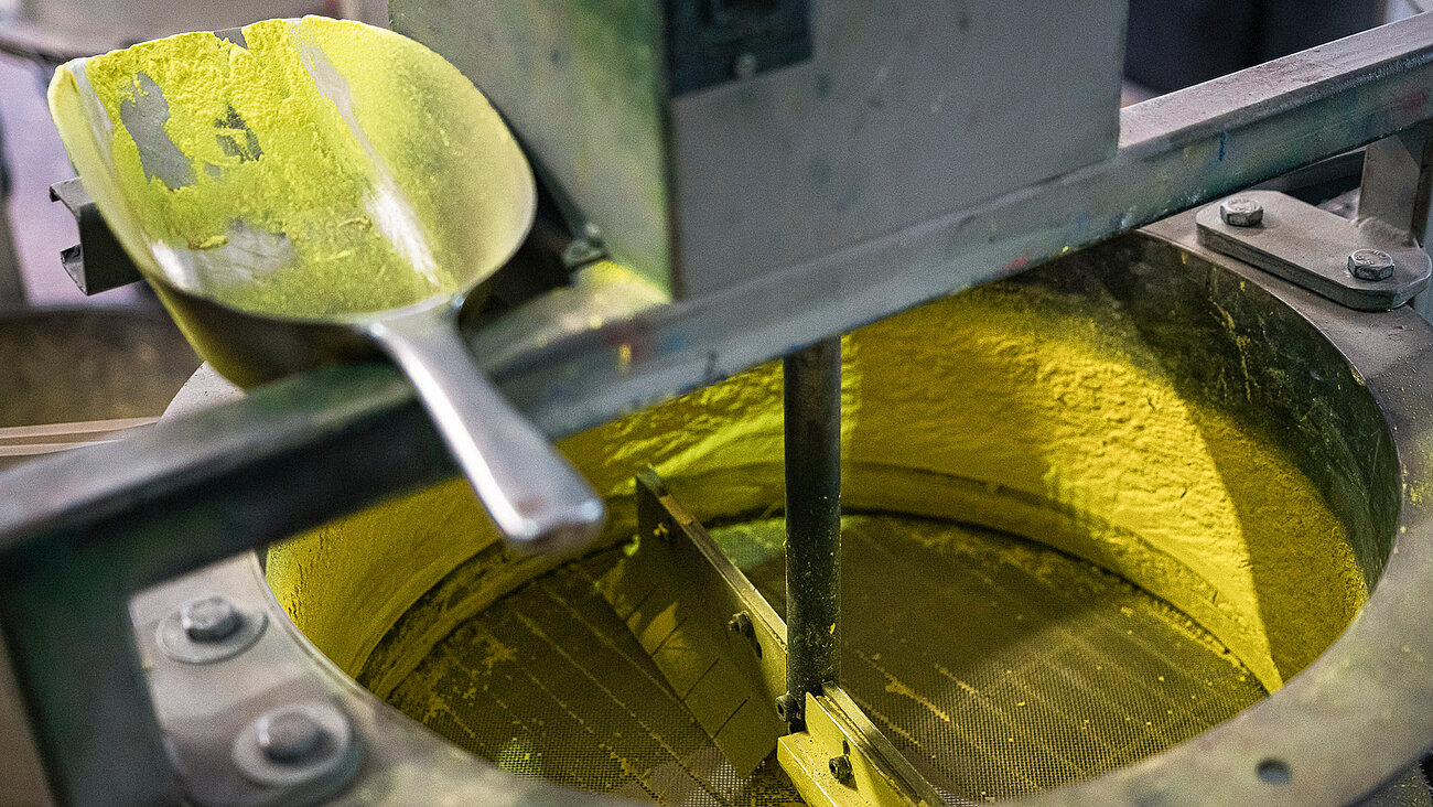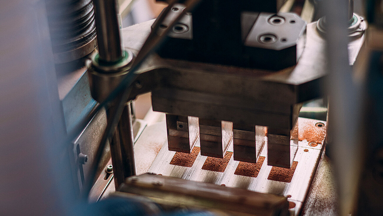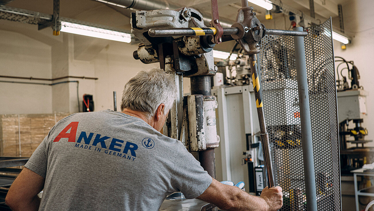 Die Ankerstein-Manufaktur setzt unterschiedliche Maschinen ein, um die Komponenten mit ihrer charakteristischen Haptik herzustellen. Aber ob nun moderne Industrietechnik oder eine historische Handpresse zum Einsatz kommt, die Zutaten der Bausteine sind seit fast 150 Jahren gleichgeblieben. Aus Sand, Schlämmkreide, Leinöl und Pigmenten entstehen unter hohem Druck die einzelnen Bausteine. „Das Leinöl verharzt dabei und verbindet die Naturstoffe zu hochstabilen Bauelementen“, erläutert Betriebsleiterin Ines Schroth das Verfahren, welches ohne moderne Klebstoffe auskommt.