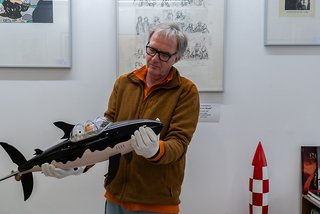 Change scene: Presenting the Adventures of Tintin. In Europe’s capital of comics, Brussels, you can see them everywhere. Not only in bookstores or souvenir shops, but also as murals adorning houses, as metres-high graffities or at tube stations: Tintin. The investigative reporter wearing plus fours, a blue V-neck jumper and a trench coat with his wire fox terrier Snowy (in French, Milou), his loyal companion. The legendary heroes from the plume of Hergé on board their shark submarine are just one of the jewels at Ultra Comix. Tintin nostalgia which Stefan Trautner also indulges in. Tintinologists will happily pay the 1500-euro price tag. Boy oh boy, there are so many treasures yet to discover. Browsing Ultra Comix’ rarities and antiquarian displays are well worth a visit: www.galerie.ultracomix-shop.de