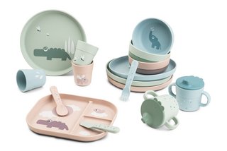 The "Foodie" tableware collection from Done by Deer encourages little ones to explore the world of food. The cute prints on the tableware show mini-stories so that little ones can take part in the adventures of their animal friends while they eat - when they splash in the water, play on the ground or fly through the clouds. Foodie plates, bowls, cups and cutlery are made of 100% food-safe PP. The practical non-slip base ensures that the dishes stay in place on the table. Microwave and dishwasher safe, it is perfect for everyday use with small children. In beautiful pastel colors, the material can be recycled later.