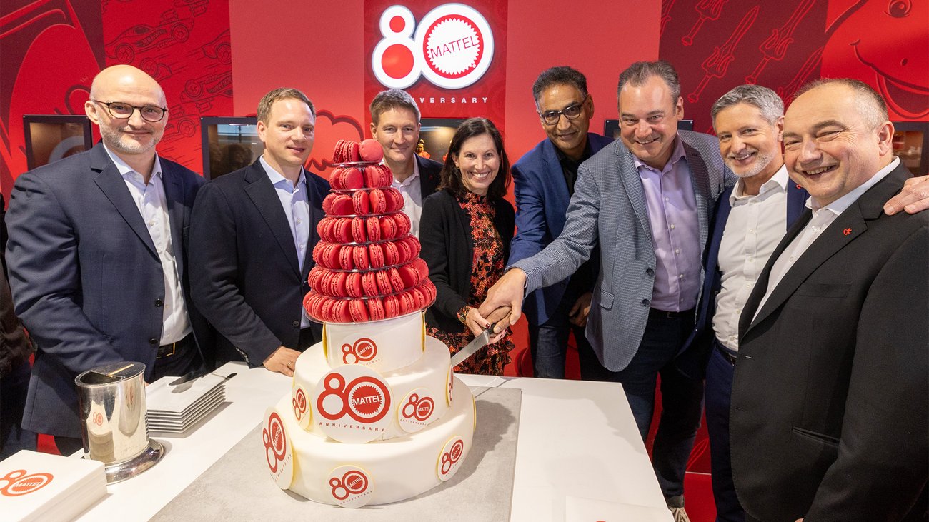 Celebrating Mattel’s 80th anniversary at Spielwarenmesse 2025 (from left to right): Nicolas Houssin, Mattel VP Marketing EMEA; Sebstian Trischler, Mattel Vice President and Country Manager DACH; Florian Hess, Spielwarenmesse eG Member of the Executive Board; Lisa McKnight, Mattel Executive Vice President and Chief Brand Officer; Sanjay Luthra, Executive Vice President and Managing Director for Europe, the Middle East and Africa (EMEA); Steve Totzke, Mattel President and Chief Commercial Officer; Christian Ulrich, Spielwarenmesse eG Member of the Executive Board and Spokesperson; Jens Pflüger, Spielwarenmesse eG Member of the Executive Board.