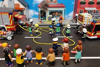 Mittlerweile umfasst die Sammlung „nahezu alles, was es in Deutschland bei Feuerwehren gibt“, sagt Jansen, inklusive Leitstelle und Atemschutzstrecke. Die Grundlage bilden fast immer Playmobil-Modelle, die der Modellbauer nach Bedarf bearbeitet und individualisiert. Im Jahr 2008 stellte er seine Feuerwehr-Welten im Playmobil-Format erstmals in einer Ausstellung vor – das Echo des Publikums war gewaltig. Mittlerweile präsentiert der Mann aus Iserlohn die Dioramen und Szenen auch in den sozialen Medien und tauscht sich mit einem wachsenden Kreis von Interessierten aus. Die Kontakte kommen aus ganz Europa und darüber hinaus: „Mein am weitesten entfernter Fan ist ein Berufsfeuerwehrmann aus dem australischen Melbourne“, sagt Jansen. Nach wie vor setzt er seine Sammlung für die Brandschutzerziehung ein. Und bei Planspielen von Feuerwehren im Umkreis werden ebenfalls mit der Playmobil-Welt Einsätze nachgestellt. Da freuen sich die Einsatzleiter über die gleichen Stärken des Spielzeugs wie die Kinder im Brandschutzunterricht: „Die Arbeit mit den Figuren ist einfach extrem anschaulich“, sagt Jansen.