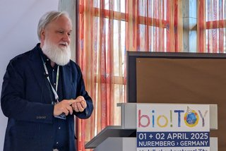 Auf der vierten bio!TOY Konferenz, die am 01. und 02.04.2025 in Nürnberg stattfand, ging es vor allem um die unterschiedlichen Facetten von Nachhaltigkeit in der Spielwarenproduktion. Besonders im Fokus stand die Frage, wie sich aus fossilen Rohstoffen gewonnene Kunststoffe durch nachwachsende Rohstoffe und recycelte Materialien ersetzen lassen. Sowohl die vor Ort anwesenden Besucher als auch die online zugeschalteten Teilnehmer hatten sichtlich Freude am Diskutieren und Fachsimpeln. Die vom Branchenblatt Renewable Carbon Plastics organisierte Veranstaltung wird von verschiedenen Organisationen unterstützt, zu denen auch die Spielwarenmesse eG gehört. Die Eröffnungsrede hielt Sharon Keilthy von STAC (Sustainable Toys Action Consulting) mit einem Fazit zur Toys Go Green-Area auf der Spielwarenmesse 2025. Von ihr erfuhr das Publikum, dass 84 von 107 eingereichten Produkten angenommen wurden. Bei den Biokunststoffen war Bio-PE der am häufigsten verwendete Werkstoff, gefolgt von Bio-PP. Von den 84 ausgestellten Spielzeugartikeln waren 25 aus recyceltem Kunststoff, 22 aus Holz, 20 aus Pappe/Papier, 8 aus Biokunststoff, 8 aus recyceltem Holz, 6 aus Biobaumwolle und 2 aus Kork gefertigt.