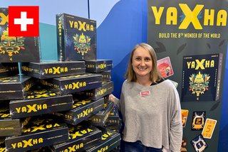 Pyramidenbau. In Yaxha von Baptiste Vaiana mit Illustrationen von Julien Bigot, veröffentlicht vom schweizerischen Hersteller Helvetiq, werkelt jeder an einer 3D-Pyramide. In Anlehnung an die Vorbilder der Mayas errichten die Spieler die Gebäude auf einem rechteckigen Grundriss. Stufenförmige Quader werden geschichtet. Das alles ist nicht in ein Themenspiel eingebettet, sondern folgt dem abstrakten Pyramidenbau. Stets wird auf drei Bauklötze in einem zufälligen Farbenmix geheim geboten. Die Steinchen müssen dann in die Pyramide eingebettet werden, um ordentlich Punkte zu erzielen. Z.B. ist eine lange Farbreihe ein mögliches Ziel. Jeder muss auf das momentane Angebot reagieren, wie auf das ferne Ziel, die fertige Pyramide, achten.