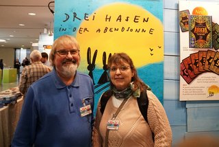 Sieglinde und Heiner Wöhning, seit 34 Jahren verheiratet, haben ihr berufliches Leben ganz dem Spiel gewidmet. Ursprünglich im pädagogischen Bereich ausgebildet, war Heiner u.a. auch Brettspielautor (für Ravensburger). Heute sind beide auf Usedom am Strand oder im Auftrag der drei Kaiserbäder Entwickler und Gestalter von kreativen Spielewelten für Gäste der Insel und Bewohner. Sie sind außerdem als Beraterteam tätig, die Schulen, Bibliotheken usw. um die aktuellen neuen Spiele nahezubringen. „Ich bin seit 1980 regelmäßig Gast der Spielwarenmesse, meine Frau seit 2009. Für uns ist die Kontaktpflege das wichtigste, erst dann kommen die Neuheiten.“