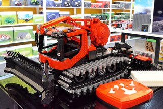 Auch Brixies hat sich ein neues Technik-Konzept einfallen lassen. Hier kommt eine Funkfernsteuerung für sechs proportional steuerbare Funktionen, die individuell mit Klemmbausteinen gestaltet werden kann. Das Grundgehäuse ist 16x8 Noppen groß und zwei Noppen hoch. Als erste Fahrzeuge kommen eine funktionstüchtige Pistenbully-Schneeraupe und drei Traktoren. Der Pistenbully aus rund 3000 Teilen hat sechs Motoren für die Ketten, das Räumschild und mehr. Das Modell des Steyr-Traktors Cervus 6440 besteht aus 2200 Teilen. Er hat einen Allradantrieb mit Planetengetriebe und Differential. Zudem sind am Heck und an der Front ein verstellbarer Oberlenker für Anbaugeräte plus verstellbare Gerätebrücke sowie eine motorisierte Zapfwelle, damit sich an den Anbauteilen auch etwas bewegt. Als weitere Traktoren wurden der MB trac 1500 und der Claas Axion 9450 angekündigt.