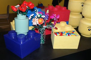 Neben Bäumen zeigten auf der Spielwarenmesse viele Klemmbausteine-Hersteller auch neue Sets für wunderschöne filigrane einzelne Blumen oder ganze Blumensträuße – mal in gedeckten Farben und auch kunterbunt in Sommerfarben. Dazu passend hatte die Nordic Houseware Group NHG auch eine 170 mm lange Botanic-Vase aus durchsichtigem Kunststoff mit 80 mm Durchmesser. Sie ergänzt die schon länger lieferbare 190 mm hohe Keramik-Vase im Lego-Stein-Look. Das seit 40 Jahren aktive Unternehmen fertigt seit 2002 unter anderem dekorative großformatige Aufbewahrungsboxen mit offiziellem Lego-Branding. Eine Neuheit aus diesem Bereich sind 25x25 cm große Transportboxen aus transparentem Kunststoff oder mit Filzbeschichtung. Beide haben einen abnehmbaren Deckel mit vier riesigen Lego-Noppen.