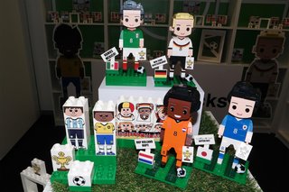 Soccerbricks aus den Niederlanden geht einen ganz anderen Weg. Das Unternehmen zeigte auf seinem Messestand statt lizenzierten vorbildgerechten Stadien eine Vielfalt von fantasievoll gestalteten Fußballspielern. Produziert werden diese passend zu 20 Nationalmannschaften in typischen Trikots-Farben mit Landesflagge. Im Sommer 2026 sollen sie in zwei Varianten verfügbar sein – als kindgerechte Sets aus ca. 150 Steinen in Standardnoppen-Größe sowie für Kleinkinder in XL Bricks Playsets aus rund 25 Großformat-Steinen passend zu Lego Duplo. Das Unternehmen bietet auch Sets, die für Firmenkunden individualisierbar sind – beispielsweise in Frisur, Haarfarbe, Hautfarbe, Gesichtsausdruck, Schlachtruf und/oder Spielernummer.