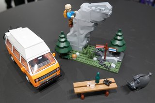 Der polnische Klemmbausteine-Hersteller Cobi zeigte in Nürnberg einige noch nicht finalisierte Handmuster lizenzierter Autoklassiker. Sportwagenfans könnte der in unterschiedlichen Varianten kommende Audi Quattro im Maßstab 1:35 gefallen. Er kommt als klassisch getunter PKW, als Motorsportwagen oder in einer Rallye-Rennversion und ist hier wahlweise als Fahrzeug allein aus 148 Teilen oder in Kombination mit einer Rennfahrerfigur nebst Siegerpodest und Pokal als Set aus 230 Teilen in Vorbereitung. Auch der VW Passat oder VW Golf dürfte bei vielen älteren Erwachsenen Erinnerungen wecken. Er kommt jeweils in zwei Farben als Golf GTI oder als Cabriolet sowie in Polizei-Version. Bei der Familie der VW-Busse wurde die T2-Generation jetzt durch einige Fahrzeuge der T3-Serie ergänzt. Das Spektrum reicht von Standard-Bus in Gelb über Einsatzfahrzeuge für Feuerwehr, Rotes Kreuz und Polizei bis zu einem Winter-Abenteuerset und einem Spielset aus 232 Teilen mit einem T3-Camper nebst kleinem Berggipfel, Kletterer, Sitzbank für die Pause und Figur eines Wildschweines. Auch im Maßstab 1:12 wurden unzählige Autos aus Klemmbausteinen präsentiert – ebenso wie Schiffe, Flugzeuge und so manche weitere Militärfahrzeuge.