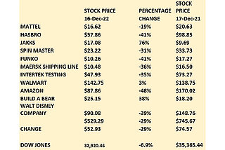 Central banks are doing their best to stifle inflation by raising interest rates. By doing so, they are scaring the stock markets and worrying consumers. As of December 16, when I am writing this, the “Global Toy Experts Composite Toy Stock Index” is down 28% year-to-year.