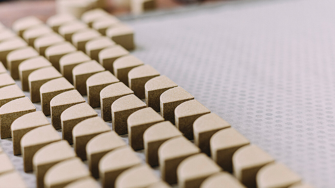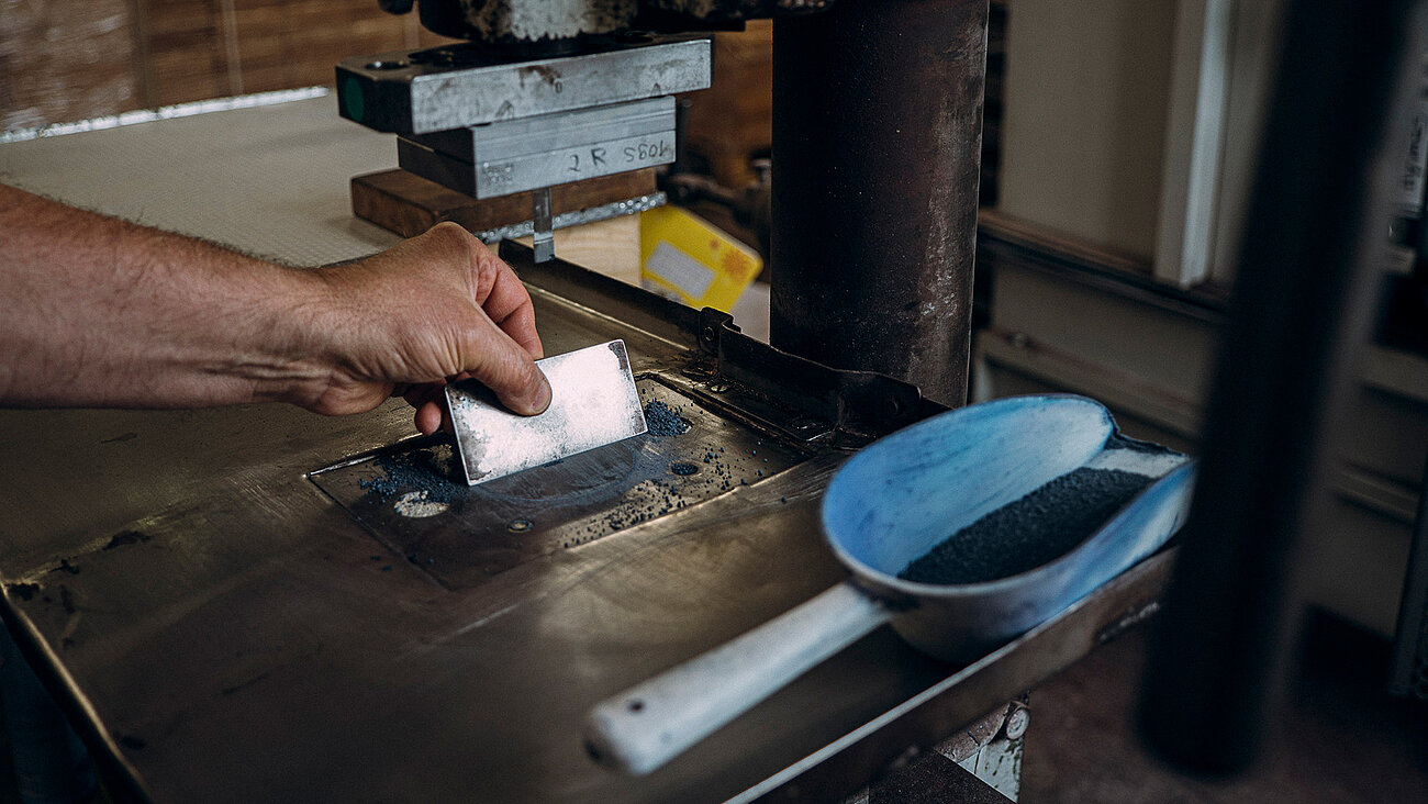 The Ankerstein manufactory uses different machines to produce the components with their characteristic feel. But whether modern industrial technology or a historic hand press is used, the ingredients of the building blocks have remained the same for almost 150 years. The individual bricks are made from sand, slurry chalk, linseed oil and pigments under high pressure. "The linseed oil hardens and bonds the natural materials into highly stable building elements," says operations manager Ines Schroth, explaining the process, which does not require modern adhesives.